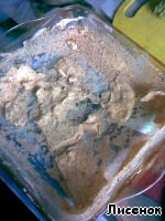 Теперь нужна нам огнеупорная форма. Смазываем ее хорошенько маслом и посыпаем сухарями(я масло положила кусками, только бортики хорошо промазала) -