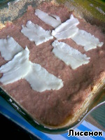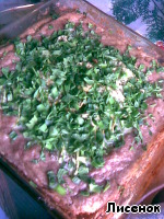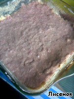 Выкладываем в форму фарш ровным слоем (нужно еще оставить немного для "бортиков")
