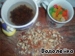 Если цукаты у вас большими кусочками, то их тоже порезать (у меня были изначально небольшими кубиками). -