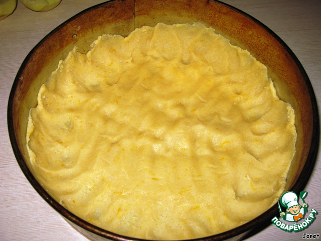 Тесто положить в форму и руками, тесто мягкое, распределить по дну, сделав высокий бортик. |