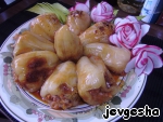 Перцы уложить в форму, залить соусом и тушить около часа при малой температуре.