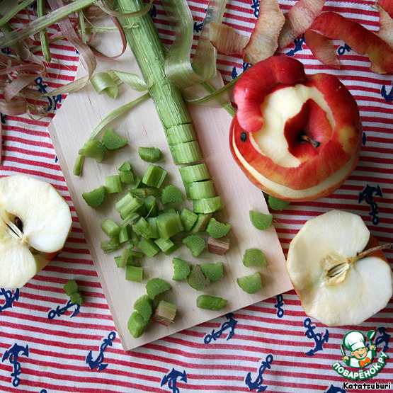 Ревень чистим, режем на кусочки. Яблоки освобождаем от кожуры, разрезаем пополам...