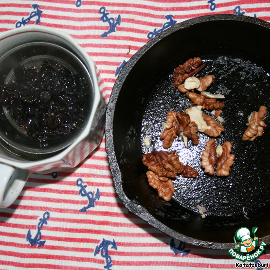 Подготавливаем начинку - изюм распариваем кипятком, либо (если не для детей) вымачиваем в коньяке. Орехи лучше поджарить. Начинка может быть самой разнообразной - мак, варенье, любые орехи, ягоды и сухофрукты - чего душа пожелает.