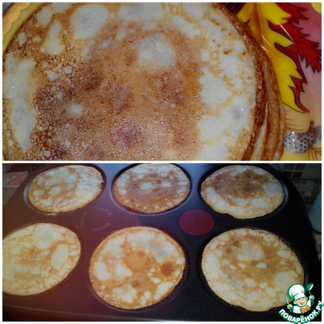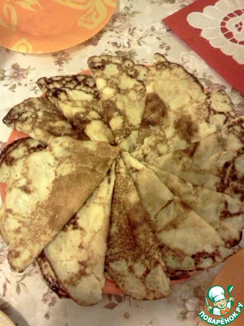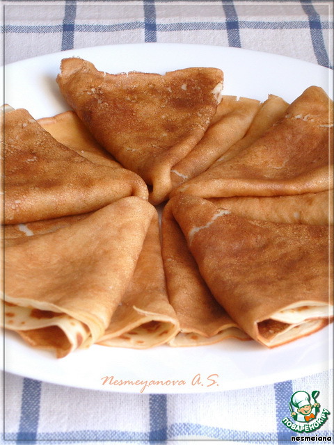Жарить лучше не слишком тонкие блины, потому как они получаются ну очень нежными.