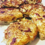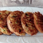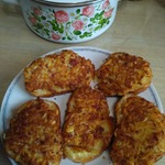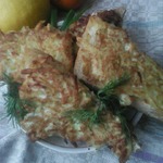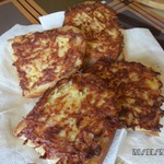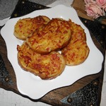 Укладываем картофелем вниз на разогретую сковороду, жарим до золотистого цвета с 2-х сторон. Я положила потом на салфетку, чтобы лишнее масло впиталось. Присыпать зеленью по желанию.