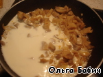 Грибы и лук порезать и пассировать на сливочном масле минут 10, добавить сливки, соль, специи, прожарить еще минут 5.
