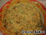 Смешать яйца с мукой + разрыхлитель, сыром.