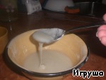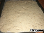 На противень, застеленный пергаментом, выливаем тесто и выпекаем при температуре 170-180 градусов до зарумянивания.