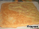 Когда корж испечётся, опрокидываем его на влажное полотенце.