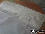 И аккуратно скручиваем. Накрываем бумагой для выпекания и даём постоять 10-15 минут.