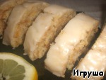Просеем сахарную пудру. Добавим к ней 4 ст.л. лимонного сока и быстро перемешаем. Получается густая глазурь. -