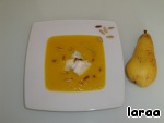 Нарезанные грушу и тыкву добавить к луку и влить горячей воды, чтобы только чуть-чуть прикрывала овоши. Довести до кипения и, убавив огонь, варить до готовности