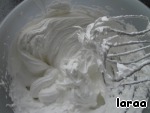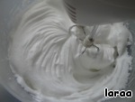 С последней порцией сахара добавляем 1 ст. л. лимонного сока. Взбиваем до тех пор, пока масса не станет плотной и глянцево-белой. Она хорошо держится на венчиках.