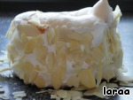 Обмазать остатками белковой массы и посыпать миндальными листочками.