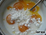 Белки (лучше из холодильника) и шепотку соли взбиваем на высокой скорости в крутую пену, до мягких пиков -
