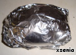 Картофель хорошо помоем, обсушим (не чистим). Заворачиваем в фольгу.