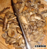 Минут за 10 до до окончания запекания картофеля начинаем готовить соус. Грибы моем и режем.