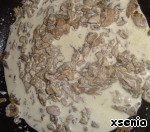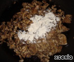 Снова перекладываем грибы на сковороду, добавляем муку и горчицу.