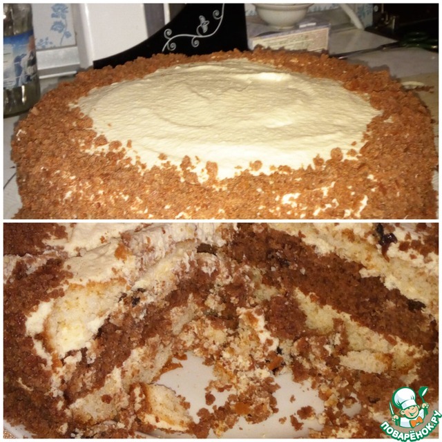 [+5]Сверху украсила темной бисквитной крошкой и грецким орехом.