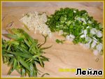 Нарезать, подготовить зеленый лук, эстрагон и чеснок