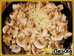 Добавляем грибы, чеснок и жарим в течение 5 минут.