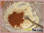 Вначале просеять и смешать муку, какао, разрыхлитель, ваниль.