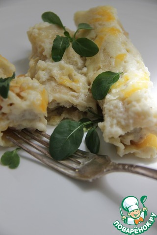 Фаршированные макаронные трубочки с соусом "Бешамель".