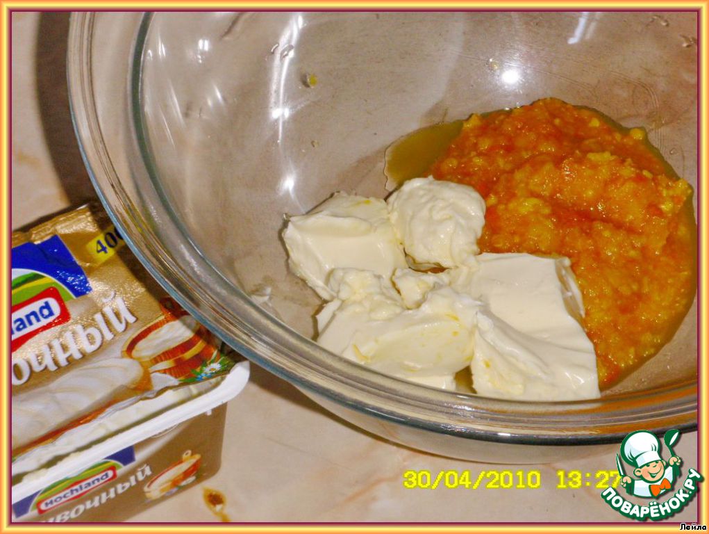 Смешайте 1/4 часть апельсинового пюре с крем-чизом в однородную массу. -
