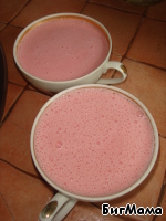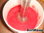 Клубнику взбиваю блендером с сахаром в пышную массу. Можно использовать мороженую ягоду. -