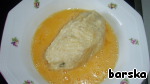 закрыть сверху рыбным фаршем и окунуть в яичную смесь