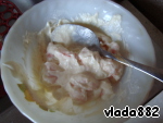 Перемешиваем муку, майонез, толченый чеснок и очищенные креветки