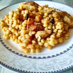 Решила сварить плов, но вместо риса добавила птитим (маленькие клeцки). Легенда о происхождении птитим такова. В молодую страну Израиль репатриировались евреи не то из Ирака, или из Ирана, то ли из какой-то другой восточной страны. Репатриировались и обнаружили, что в Израиле риса нет. То есть есть немного, но не много. А восточным евреям нужно очень много риса, потому что это их любимая еда, и без нее они отказываются работать на стройках сионизма. И тогда фирма "Осэм" вышла с концептуальным продуктом - макарончики в форме риса. Рисинки из муки. Назвали это дело "птитим", а за границей продукт позиционировали как "Израильский рис".