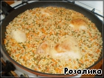 Залить водой так, чтобы она покрывала птитим на 3-4 см. Тушить под крышкой до готовности (около 8-12 минут). -