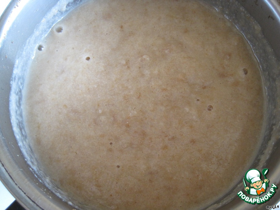 Дрожжи развести небольшим количеством воды, подбить мукой, добавить немного сахара и дать дрожжам заработать, добавляем в кастрюлю дрожжи и песок. По желанию добавить сусло, но можно и без него.