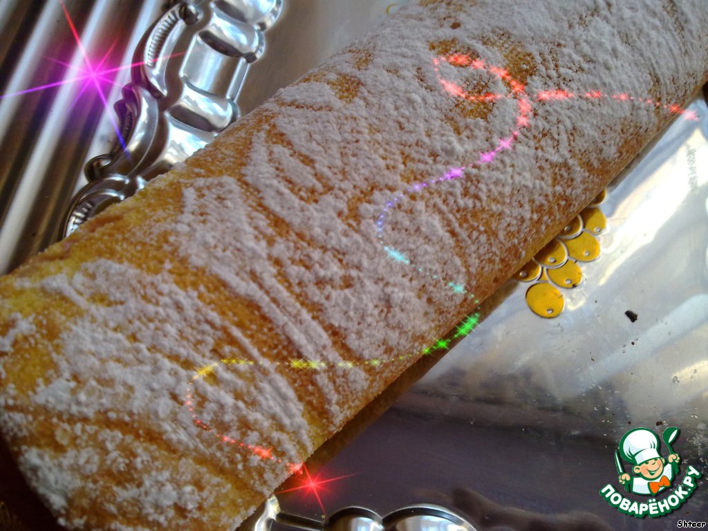 Снова свернуть в рулет. Украсить по желанию, как говорится - кто на что горазд. Самое элементарное - присыпать сахарной пудрой.