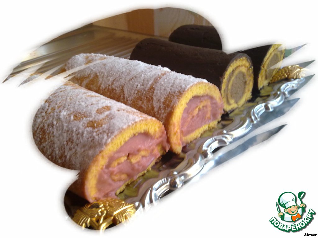Бисквитный рулет с нежным вишневым кремом, имеющим сладкий вкус с легкой кислинкой.