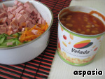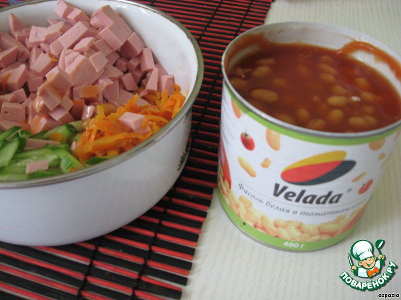 - Фасоль (белая в томатном соусе) — 1 бан.