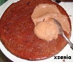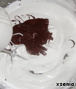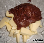Крем: Белок взбиваем, постепенно добавляя сахар. Взбиваем до тех пор, пока сахар полностью не растворится. Шоколад растопим на водяной бане, вводим во взбитый белок, хорошо перемешаем. Затем взбиваем с мягким маслом.