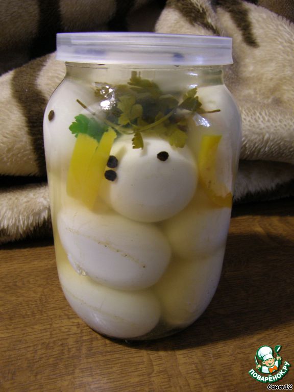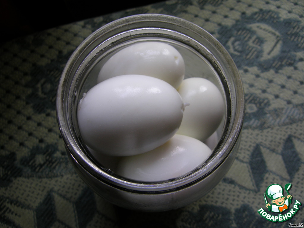 Залете яйца горячим отваром и закройте капроновой крышкой. Такие яйца должны стоять в холодильнике 7 дней.