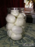 Сварите вкрутую 12-14 яиц (у меня в литровую банку поместилось 14 варёных яиц). Пробовал сырыми - 9 вышло.