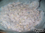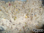 В другой посуде смешиваем йогурт, фисташки. Перемешиваем.