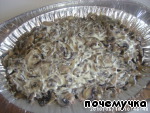 Обжарить на растительном масле лук, затем добавить грибы и жарить вместе ~7-10 минут.