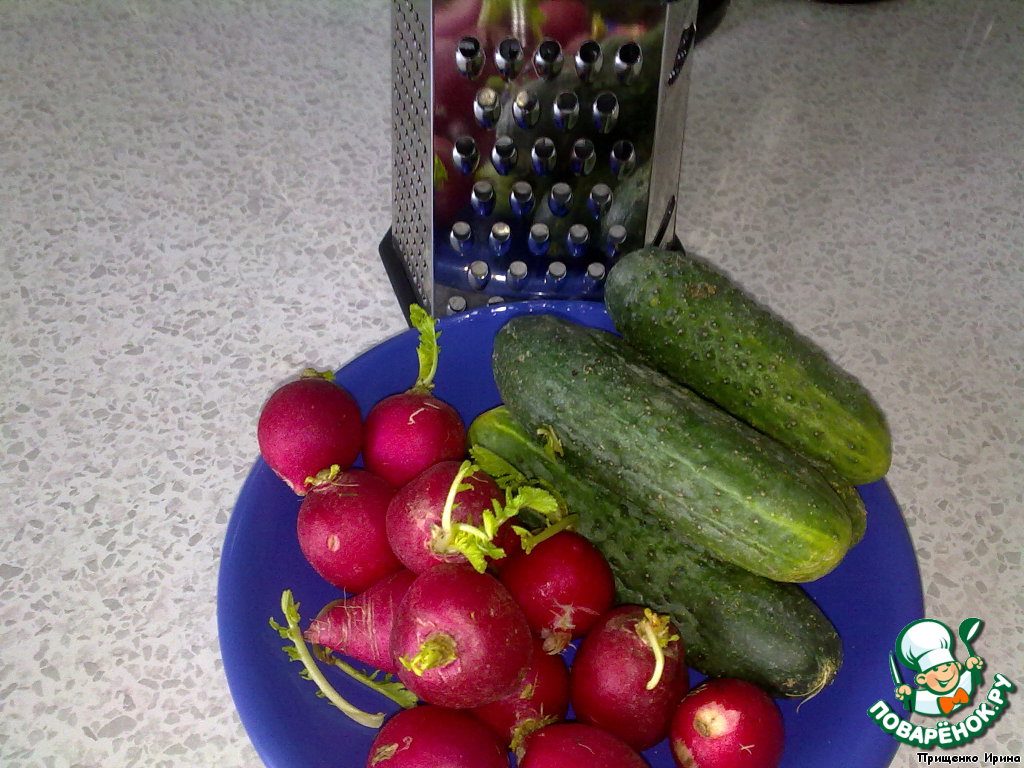 редис и огурцы трем на крупной терке и опять все в кастрюлю!!! -