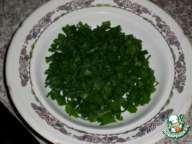 Зелёный лук мелко порубить.