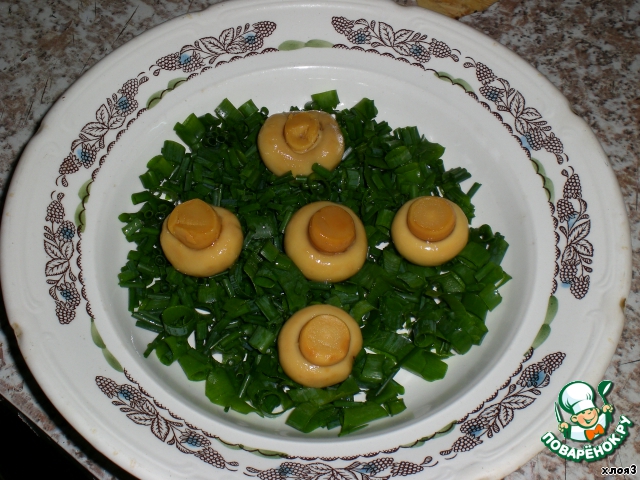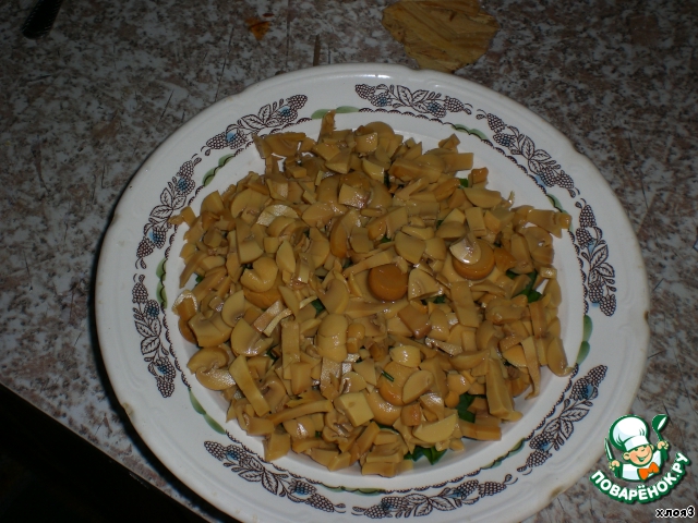 А на них уже нарезанные грибы,