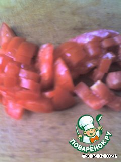 Помидор нарезать кубиками.