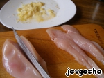 На каждый кусочек нанести чесночную заправку - можно ножом или ложечкой или кисточкой кулинарной -