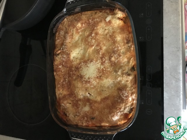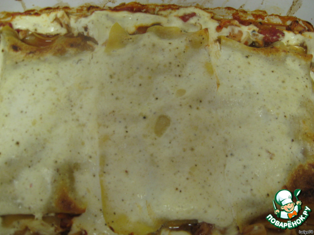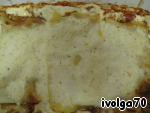 Покрываем нашу лазанью соусом и немного посыпаем тертым пармезаном.