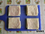 Положить на каждый кусочек лаваша по кусочку колбаски.