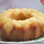 Форму для кекса (металлическую) смазать маслом, поставить на очень слабый огонь, положить на дно кусочки масла (30 г) и посыпать сахаром. Подождать, пока сахар расплавится в масле и сверху выложить кольца ананасов.